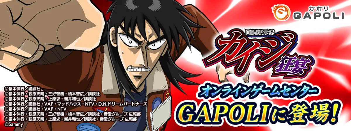 2025年4月24日(木)、株式会社サミーネットワークスが運営するオンラインゲームセンター『GAPOLI』に、人気漫画を原作とした「回胴黙示録カイジ」の新作、"狂宴"が登場します。このゲームでは、カイジの世界観や緊張感が見事に再現されており、ファンならずとも楽しめる内容となっています。