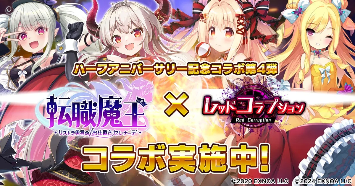 合同会社EXNOAが展開する人気ゲーム『転職魔王~リストラ勇者のお仕置きセレナーデ~』が、ハーフアニバーサリーを祝して、豪華な4大コラボイベントの第4弾を発表しました。このコラボは、近未来RPG『レッドコラプション』とともに展開され、プレイヤーにとって魅力的な内容が盛りだくさんです。