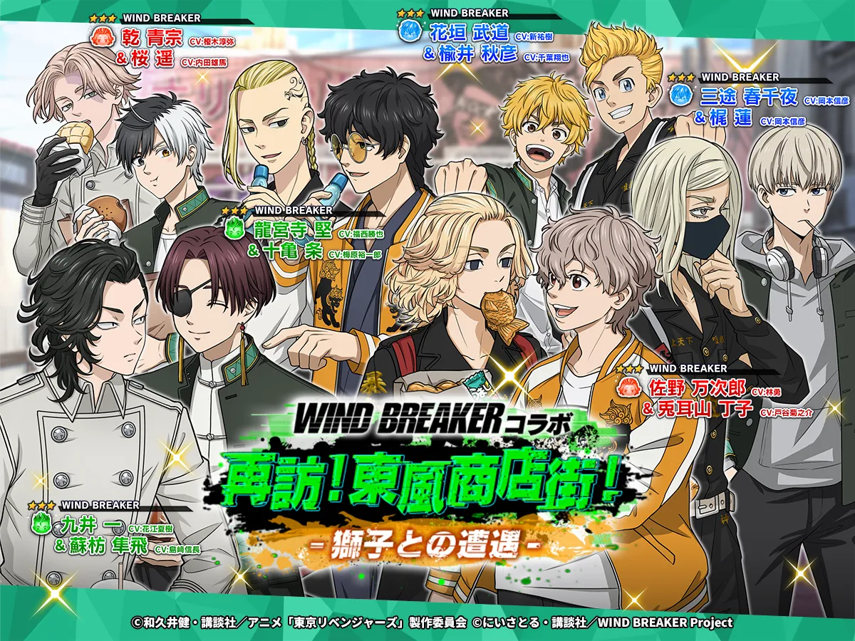 スマートフォン向けパズルRPG『東京リベンジャーズ ぱずりべ! 全国制覇への道』(以下『ぱずりべ』)が、TVアニメ『WIND BREAKER』とのコラボイベント第二弾を2025年10月8日(水)15時から実施することが発表されました。コラボイベントのタイトルは「WIND BREAKERコラボ 再訪!東風商店街!-獅子との遭遇-」。