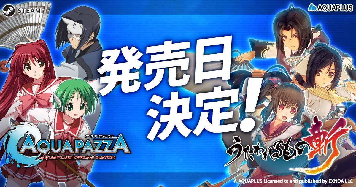 2023年9月25日、2D対戦格闘ゲーム『AQUAPAZZA』がついに発売されます。また、10月23日には3Dアクションゲーム『うたわれるもの斬』もリリースされることが決定し、ゲームファンにとって嬉しいニュースが飛び込んできました。これと同時に、アクアプラス作品のセールも始まり、お得にゲームを手に入れるチャンスが到来しました!