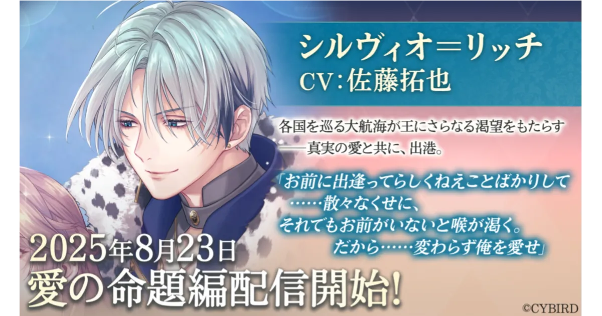 株式会社サイバードが展開する人気恋愛ゲーム『イケメン王子 美女と野獣の最後の恋』が新たなコンテンツとして「シルヴィオ=リッチ」の愛の命題編を2025年8月23日より配信開始しました。この新しい物語は、いよいよストーリーが進化する公式の最新作として注目を集めています。