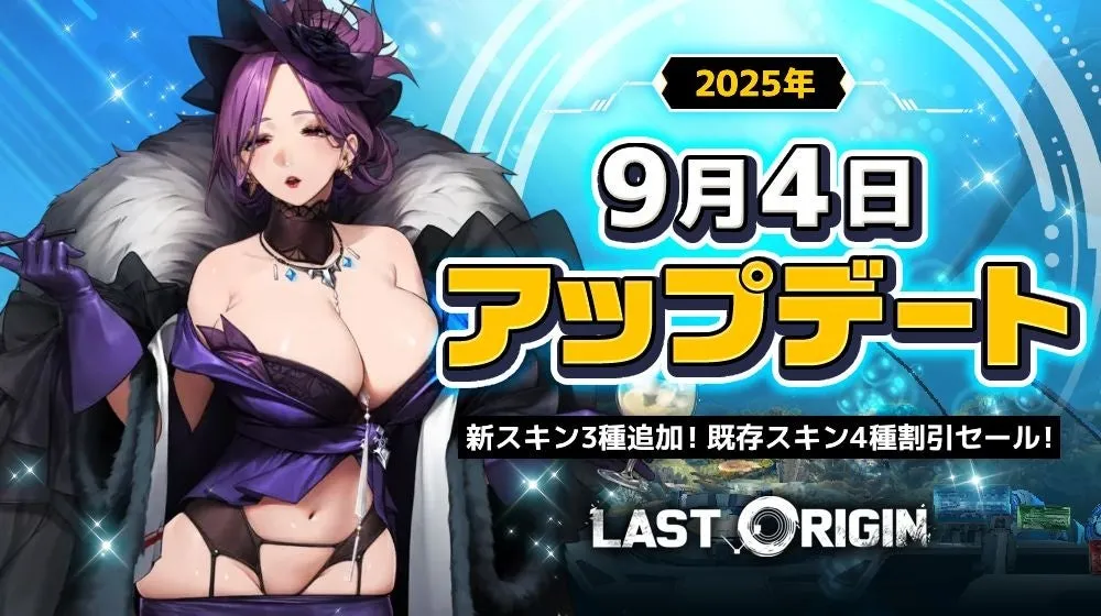 株式会社G・O・Pは、スマートフォン向け次世代美少女×戦略RPG『ラストオリジン』(略称:ラスオリ)の最新アップデートを発表しました。このアップデートでは、2025年9月4日から新規スキンが3種類追加され、さらに既存スキンの割引セールも実施されるとのことです。
