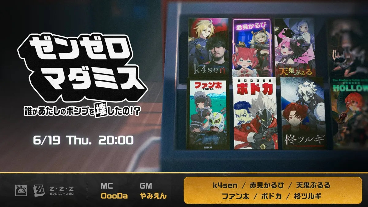 イベントのタイトルは「ゼンゼロマダミス 誰があたしのボンプを壊したの!?」。このユニークなタイトルからも、参加者たちが巻き込まれる緊迫した推理劇が期待されます。配信は6月19日の20:00からスタート。MCにはOooDa、ゲームマスターにはやみえん、そして豪華な出演者たちが参加予定です。参加者の中にはファン太や赤見かるび、天鬼ぷるるなどが名を連ねており、どのような推理バトルが繰り広げられるのか注目が集まっています。