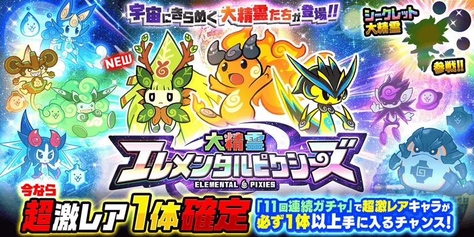 ポノス株式会社からのお知らせです。スマートフォン向けゲーム『にゃんこ大戦争』に新しいキャラクターが加わりました。今回のレアガチャイベントは、「大精霊エレメンタルピクシーズ」と題され、2025年9月6日(土)から9月9日(火)までの期間限定で実施されます。このイベントは、プレイヤーに新たなキャラクターを手に入れる絶好のチャンスとなっています。