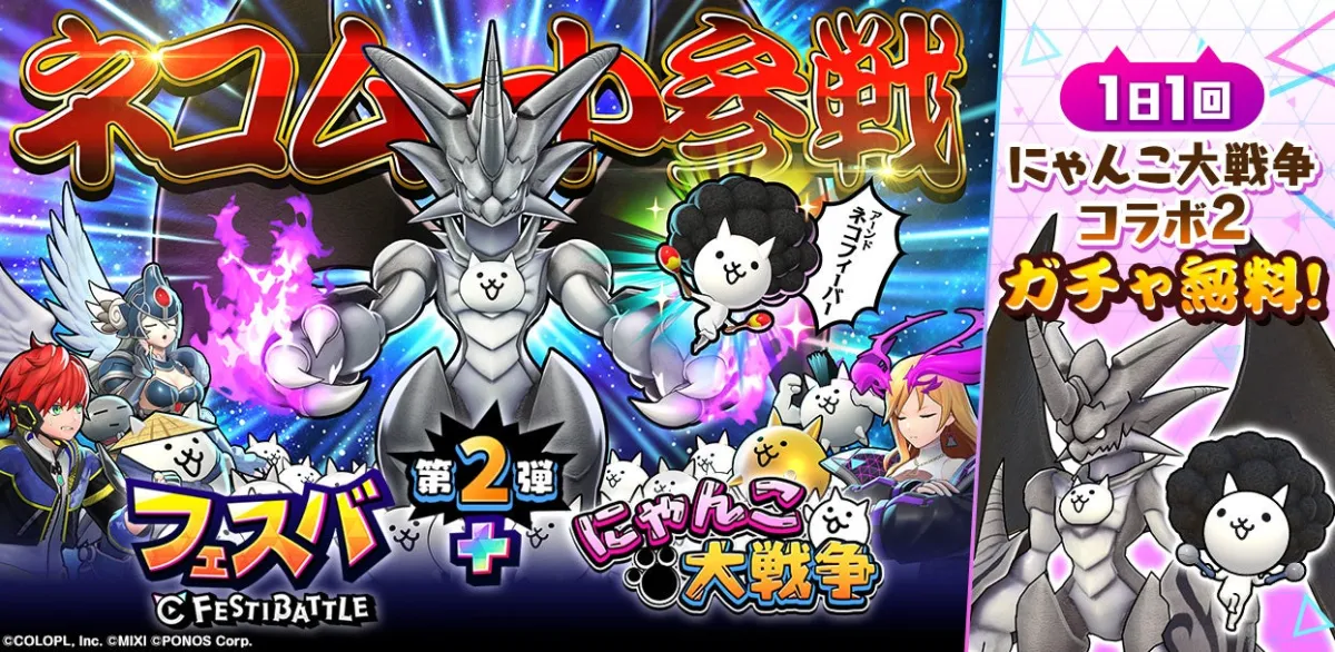 2025年2月28日、株式会社コロプラと株式会社MIXIの新作ゲーム『フェスバ+』において、『にゃんこ大戦争』との第2回コラボイベントが開催されます。このイベントでは新たに「覚醒のネコムート」と「ネコフィーバー」という2体のヒーローが登場し、多彩なバトルを展開します。