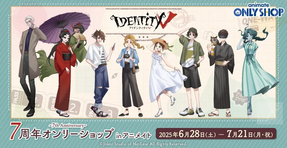 非対称対戦型マルチプレイゲーム『Identity V 第五人格』のオンリーショップが、2025年6月28日からアニメイト池袋本店、広島店、梅田店で新たにオープンします。この特別なショップでは、ゲームのキャラクターたちが日本各地を旅する装いの新規描き下ろしイラストが使われた、数量限定のグッズが多数取り揃えられています。