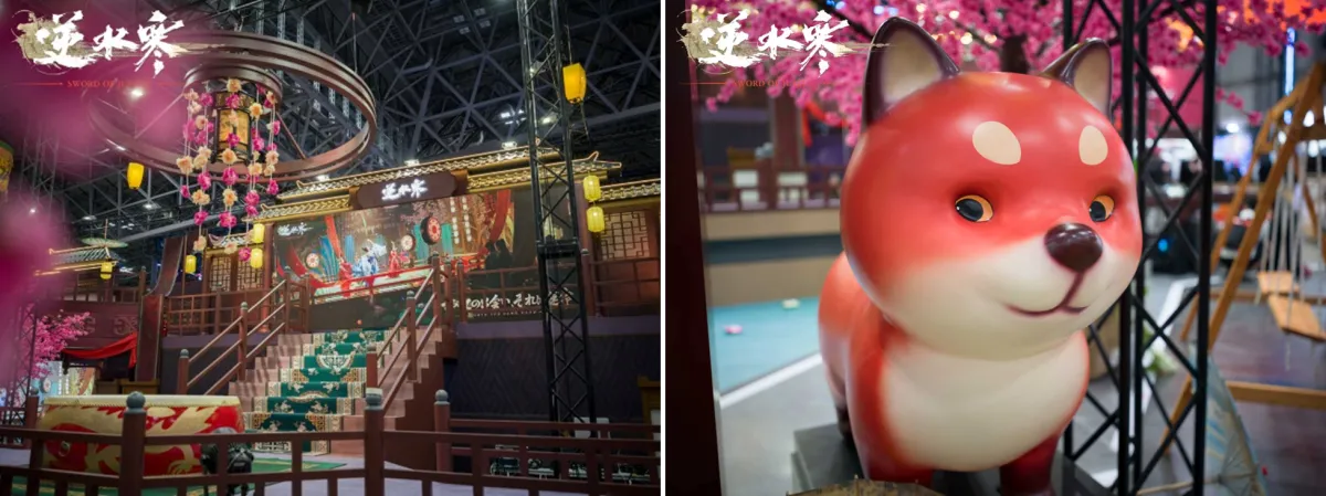 また、ブースでは特別展示やノベルティも用意されています。『逆水寒』にちなむオリジナルアイテムとして、血河ワンコの扇子や透かしカード、アクリル絵馬、水墨風のショルダーバッグ、流派ポストカードなどが限定で配布されます。