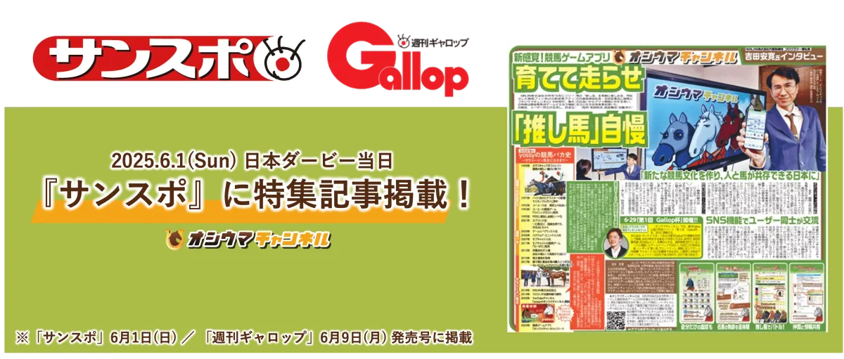 競馬ファンにとって特別な日が近づいています。2025年6月1日、今年の日本ダービー(G1)が行われる日に、競馬メディア『サンケイスポーツ』と競馬専門誌『Gallop』が協力して、NINJIN株式会社が開発した競馬コミュニティアプリ『オシウマチャンネル』に関する特集記事が掲載されます。この特集では、アプリの魅力や使い方について、競馬を愛する人々に向けて詳細に紹介されています。