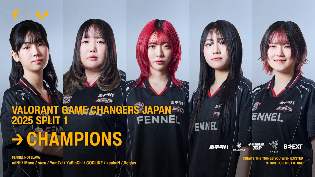 プロeスポーツチーム「FENNEL」が運営するVALORANT女子部門、FENNEL HOTELAVAが、2025年4月30日に開催された日本国内のVALORANT公式女性大会「VALORANT Game Changers Japan 2025 Split 1」のグランドファイナルで優勝しました。これにより、FENNEL HOTELAVAはPacific地域予選アジア大会への出場権を手に入れることとなりました。