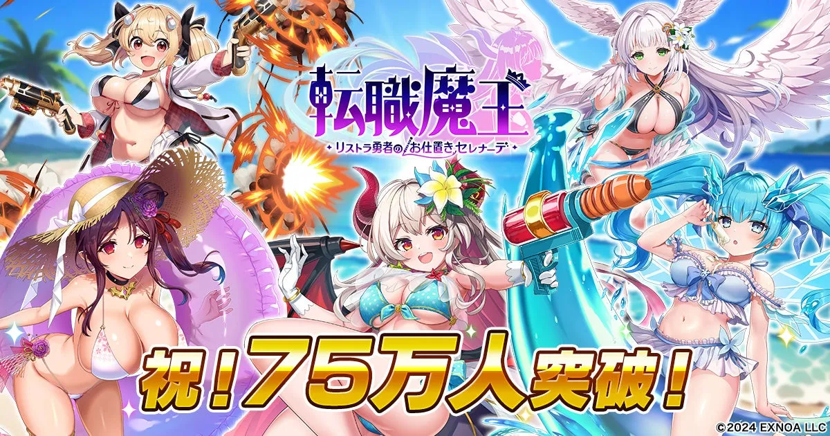 DMM GAMESが展開する人気タイトル『転職魔王~リストラ勇者のお仕置きセレナーデ~』(以下、『転職魔王』)が、ユーザー数75万人を突破しました。この驚異的な成長を受け、運営会社である合同会社EXNOAが、特別な記念キャンペーンを開催しています。はじめての方も、長く楽しんでいるプレイヤーも共に楽しめる内容が満載です。