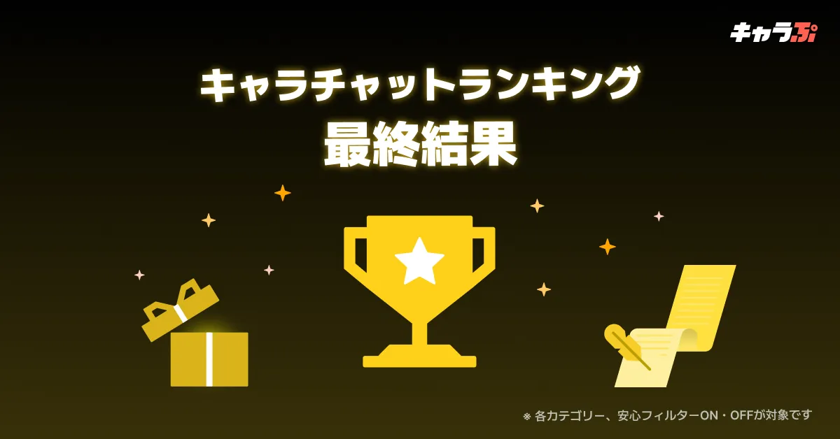 「キャラチャットランキング」は、ユーザー自らが設定し、公開したAIキャラクターのチャット数に基づいて順位を決定するイベントです。参加中、チャットや応援メッセージが次々と投稿され、キャラクター同士の競争が白熱しました。特に注目されたのは、あるキャラクターの圧倒的な支持です。このキャラクターは、終始トップを維持し続け、結果として最多優勝者に輝きました。優勝者には、40万円分のAmazonギフト券が贈呈されます。