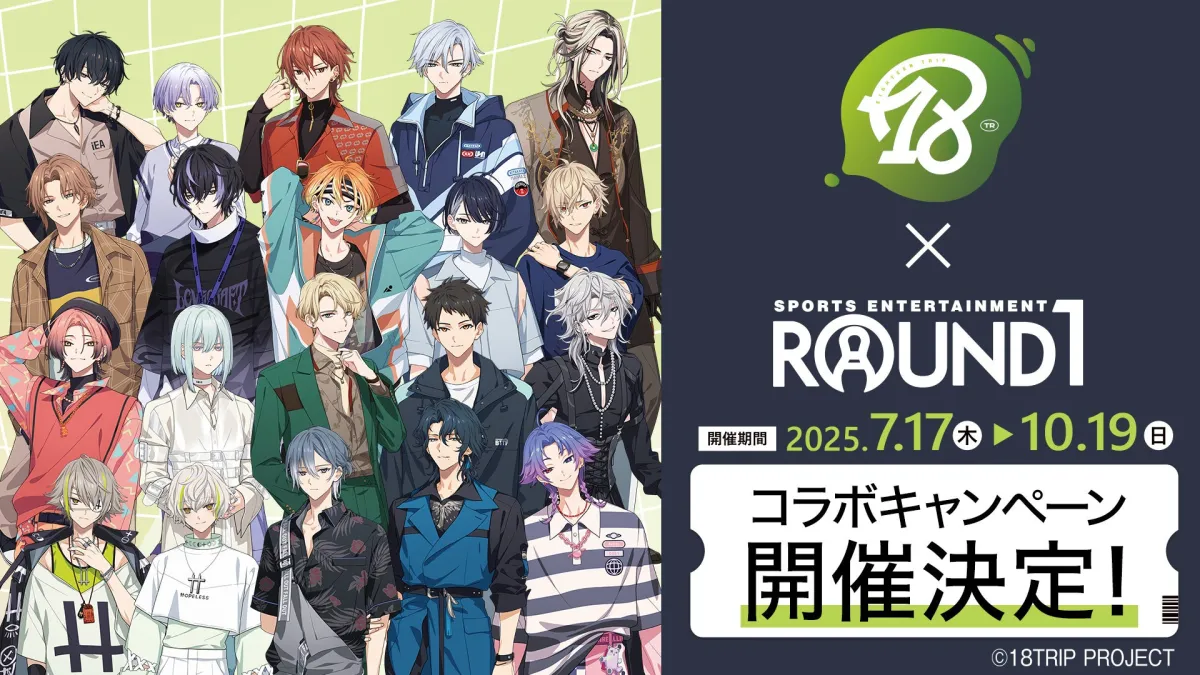 2025年7月17日(木)から、近未来おもてなしアドベンチャー『18TRIP』と、エンターテインメント複合施設「ROUND1」のコラボキャンペーンが全国のラウンドワンでスタートします。このキャンペーンでは、特別に描き起こされたイラストをあしらったグッズが登場するほか、様々なコラボメニューも用意されています。