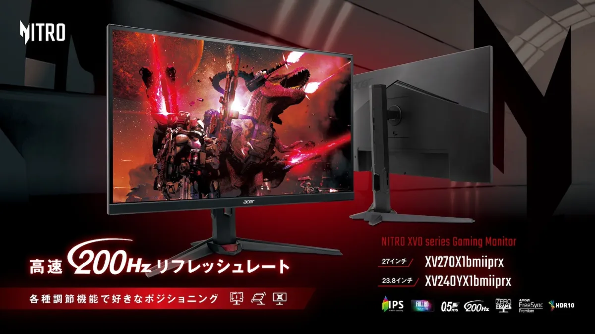 日本エイサー株式会社が、ゲーミングブランドNitroの新しいモニターシリーズとして、リフレッシュレートを200Hzに引き上げた「XV240YX1bmiiprx」と「XV270X1bmiiprx」の2機種を発表しました。この2つのモデルは、2月14日より主要家電量販店で購入可能です。